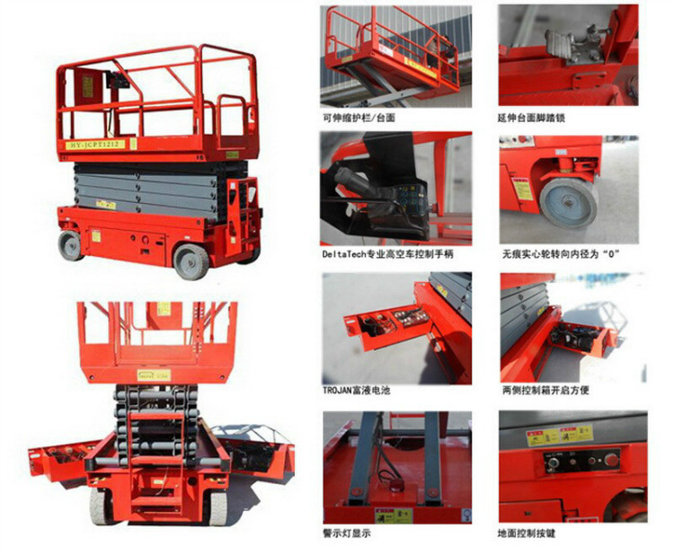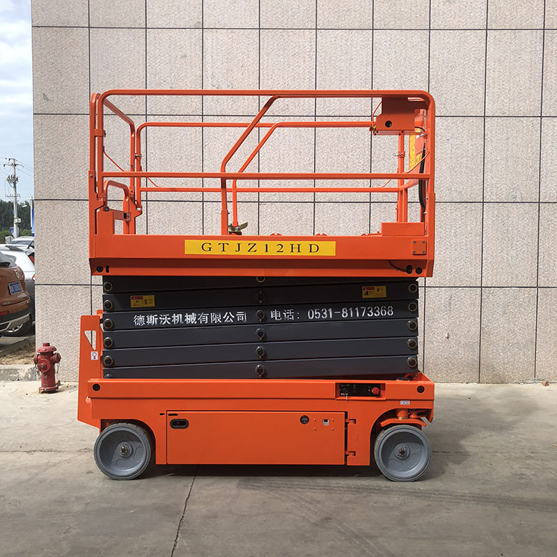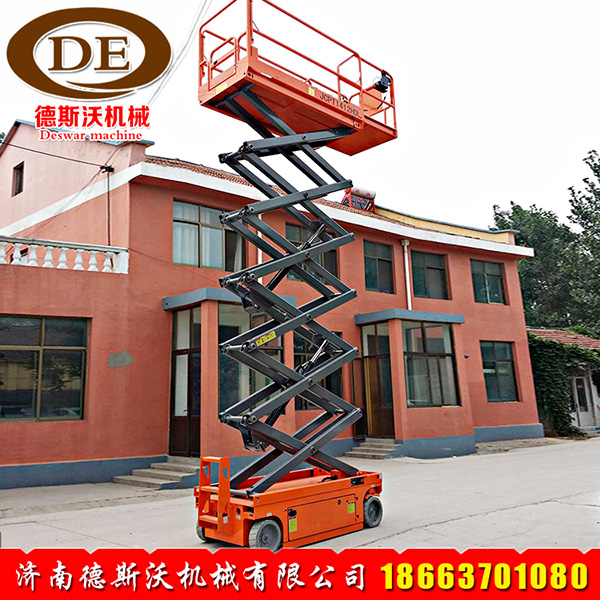 德斯沃集团制造的全自动自行式液压升降机,是一款不用外接电源的高空作业平台,全自动行走,全自行升降平台,太原自行式升降机适用于各行各业的高空作业使用。使用升降机时一个人就可以独自控制升降机的行走、升降、转弯,升降机在升高过程中也可以灵活行走,升降机底盘配重大,在升高过程中无需用支腿辅助支撑;升降机具有倾斜保护系统、紧急下降系统、自动安全板、全行程行走,是一款智能型的高空作业平台。全自行升降机主要部件都是采购进口部件,升降系统采用美国怀特液压动力单元作为升降动力,行走系统采用液压动力驱动,能耗低,功率大,增加了续航使用时间,电力系统采用美国邱健电瓶,免维护,寿命长,液压油缸采用合资产品(恒宇),操控系统(德力西电气),航空充电插头,主体枝杆采用q235材质,韧性高,耐屈服,钢板全部机激光焊接,工作台面载重大,设有伸缩台面,护栏可自动延伸,扩展了高空作业的范围。整机质保一年,主要部件质保五年,非人为因素损坏免费维修。全自行升降机特别适合用于酒店、码头、机场、车站、航站楼、商场、体育馆、学校、路政、小区物业等的高空作业使用。
